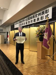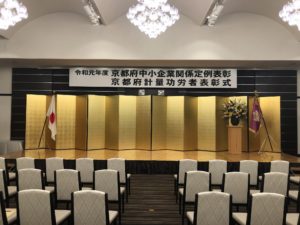 去る令和元年11月25日(月)京都ガーデンパレス「葵」にて、令和元年京都府中小企業優良従業員表彰式が執り行われ、当社社員1名が表彰されました。
