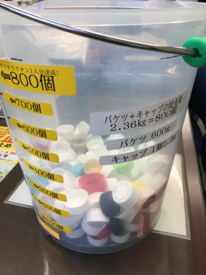 回収の目的はキャップ800個で1人分のポリオワクチンになるとの事なので、