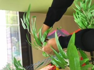 最初の3年は本物の笹を使用していました。昨年はミニ笹を購入しました。(いつも笹を用意して下さる谷さんが舞洲に異動になった為、本物が入手できなかったのです)