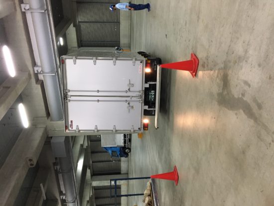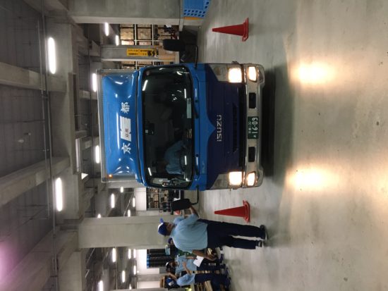 トラックを使用し巻き込み防止として、内輪差・外輪差の講習を実施!