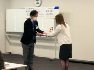 今年は4名(舞洲からは3名)が、リーダーへ昇格することとなり、社長から辞令が昇格者に手渡され、これからの抱負を語っていただきました。