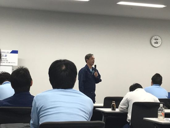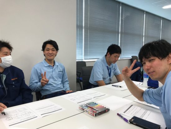 内容としては、午前中に「ヒューマンエラー防止・安全管理研修」のワークショップを行い、午後からは昇格者の発表や、就業規則の読み合わせ、DVD鑑賞「未来工業㈱常に考える!それが元気の原動力!」を行いました。