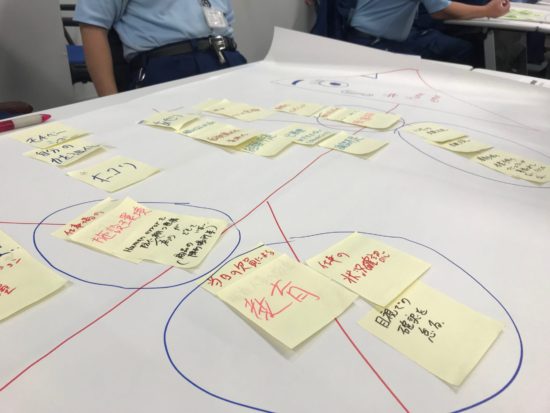 ワークショップでは、倉庫班とドライバー班にわかれ業務中に出るヒューマンエラー(ミス)について、なぜ起きるのか?どうしたら防げるのか?をみんなで具体例を出しながら話し合っていきました。事務職の私としては、普段知ることのできない倉庫やドライバーの方々の悩みやあるあるなどを知ることができ、新たな世界を見ることができた気がします。