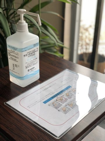 新型コロナウイルスの感染拡大防止として、エントランスにアルコール消毒液を設置し、来訪されるお客様