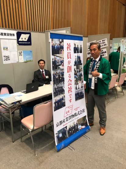 「京都・滋賀しごとNavi」合同企業説明会へ参加 社行事 求人案内 | 2017.05.17 中小企業家同友会の『合同企業説明会』に出展しました。今回の会社PRのために垂れ幕を用意したり、ドライバー・作業員の一日のスケジュールや弊社の経営理念を掲示して学生さんを引き寄せようと頑張りましたが・・・。学生の皆さんは、あらかじめHPを見たりして、訪問する企業を決めてきていたようです。なので、今後はHPでのPRに力を注ぎたいですね。