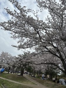 4月7日の日曜日の昼から家族で家の近くのけいはんな記念公園に散歩がてらにお花見に。 考えることは皆同じで公園の近くに来ると駐車場待ちの長蛇の列… でもやっぱり満開の桜は綺麗で満開の桜の下で楽しそうに飲み食いしている姿を見るだけで、楽しい気持ちになりました。            本社 宮川